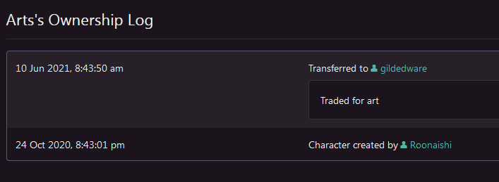 Given to me in exchange for art on Toyhouse.