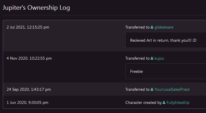 Given to me in exchange for art on Toyhouse.